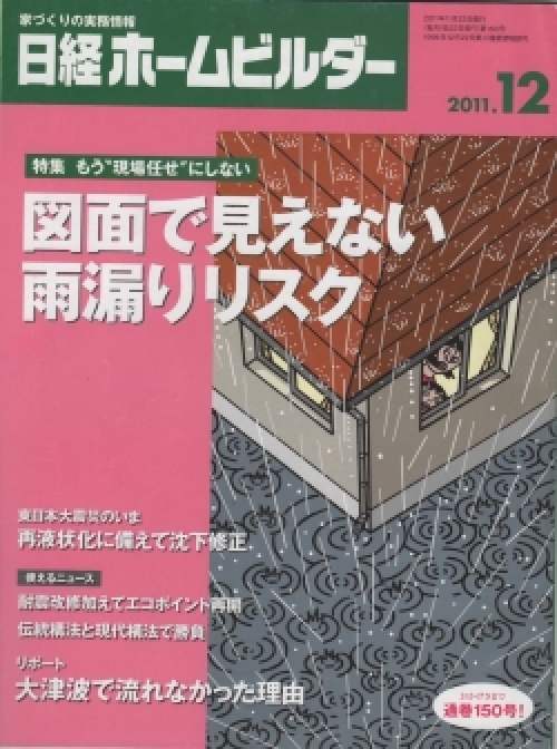 日経ホームビルダー2011年11月号に掲載されました。特集 『耐震リフォームの判断ミスを防げ』です。p32、p33、p41、p42です。この記事はWEBで購入できます。