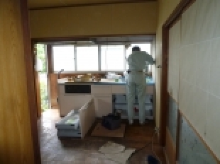 右奥の3尺3スパン分の壁が耐震性に大きく寄与しています。右奥にあるDKから使えるようにするために取り除かなければなりません。新しく新設柱を建てて3尺の大強度の壁を入れました。